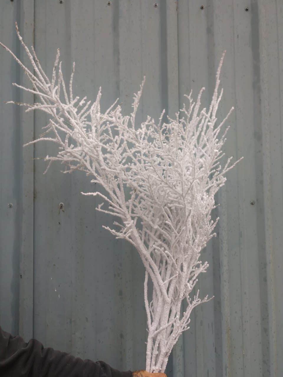 Flocked branches–we use huckleberry for most of our flocked branches–they have a lot of horizontal branching which is what makes our flocked branches many steps above the rest. Quality flock material too–check it out, they are the best you will ever find.